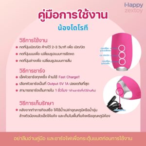 การทำความสะอาดก่อน/หลังการใช้งาน : ทำความสะอาดด้วยเจลอาบน้ำเด็ก หรือน้ำยาทำความสะอาดจุดซ่อนเร้น ด้วยน้ำเปล่าอุณหภูมิปกติหรือน้ำอุ่น เช็ดทำความสะอาดให้แห้งทุกครั้ง หลังการใช้งาน เพื่อยืดอายุการใช้งาน