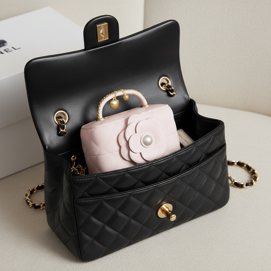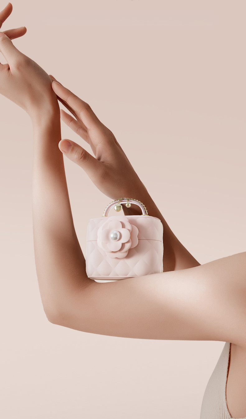 ออกแบบสไตล์ “กระเป๋าชาแนลขนาดจิ๋ว” มีลายหนังนุ่มพร้อมดอกไม้ไข่มุก สวยงาม พกพาสะดวก เก็บง่าย