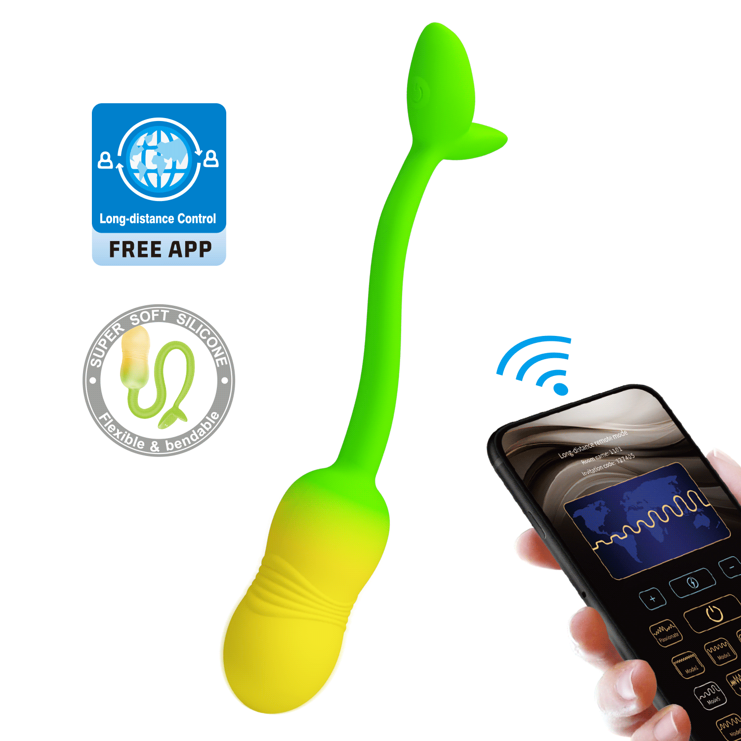 ผลิตจากซิลิโคนคุณภาพเครื่องเล็กแต่ สั่นแรง ปรับสั่นได้ 12 รูปแบบที่ตัวเครื่อง สามารถเชื่อมแอปควบคุมผ่านมือถือได้ทั่วโลก