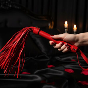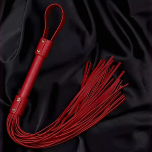 แส้หนัง PU สีแดงสุดหรู ดีไซน์เรียบหรูแต่เร้าใจ ใช้วัสดุคุณภาพสูง จับถนัดมือ