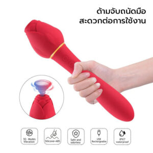 ผลิตจากซิลิโคนคุณภาพ ดีไซน์กุหลาบสวยงาม ฟังชั่นดูด+สั่น ด้ามจับถนัดมือ ปรับระดับการดูดได้ 5 รูปแบบ การสั่นปรับได้ 10 รูปแบบ